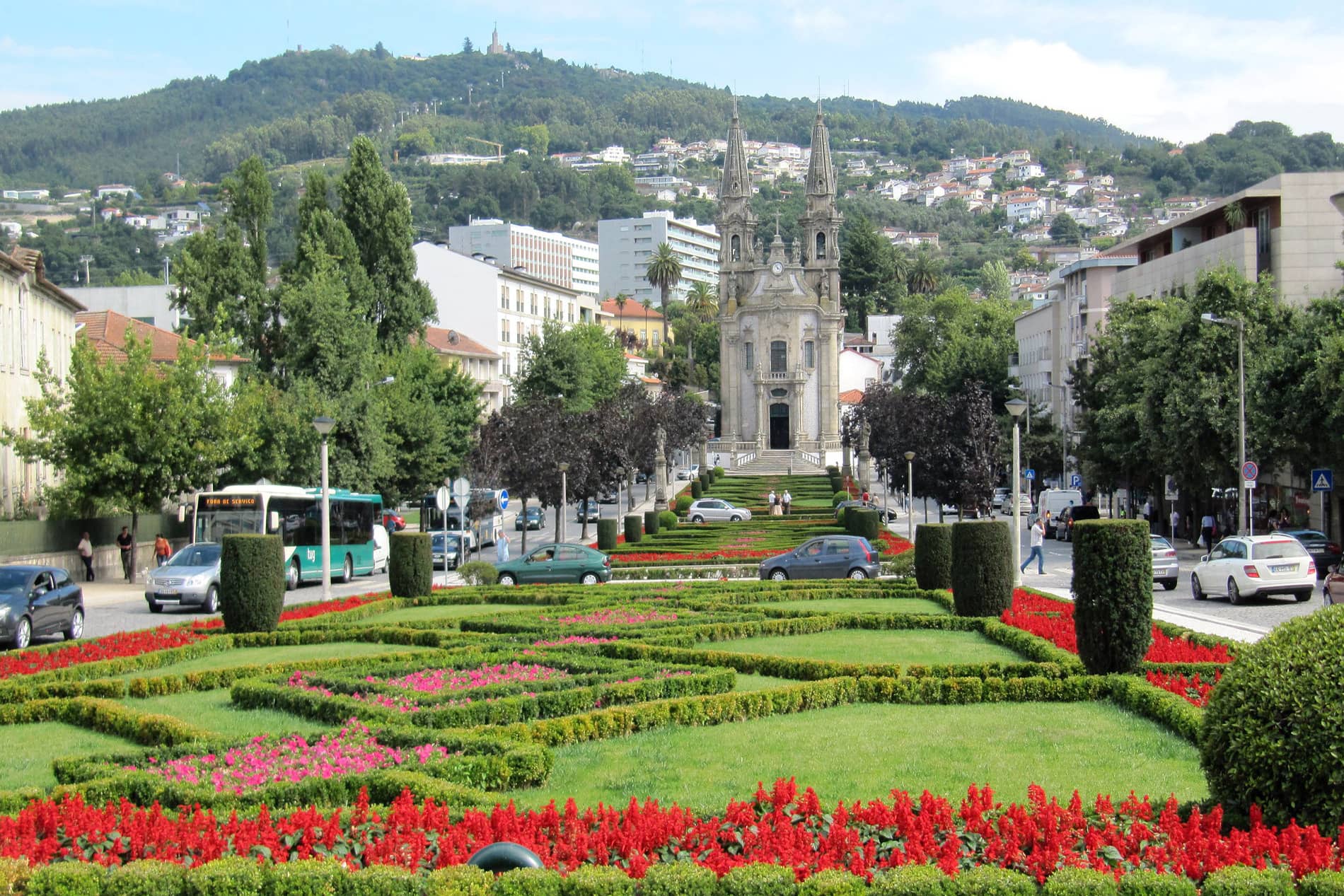The square is known by locals as “Campo da Feira”. The beautiful garden that stretches all the way to the church changes color throughout the seasons, always with seasonal flowers.